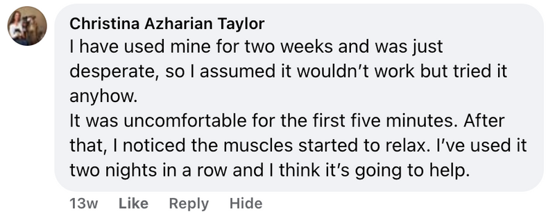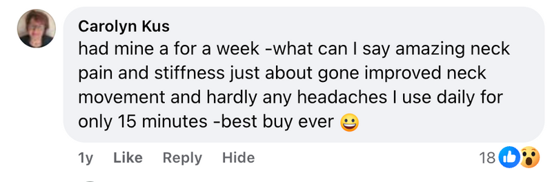 It's also proven to strengthen muscles by contracting them - which makes them stronger, making it easier to start moving around again, and improving neck’s mobility.